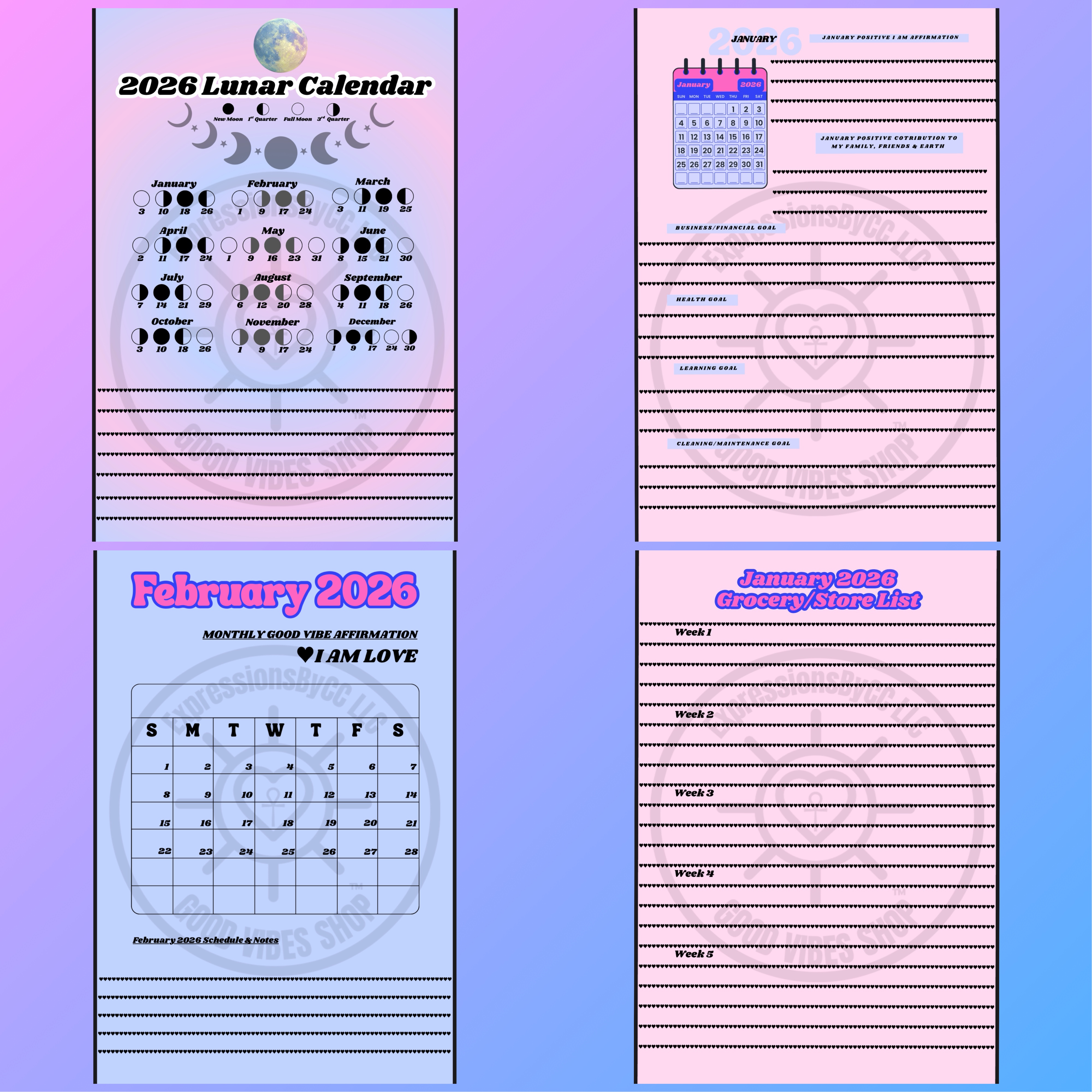 ♡ Lets Get Organized, Lets Set & Reach Our Goals, Lets Travel this Gorgeous Planet, Lets Budget, Lets Plan, Lets Affirm All 2026! This Next Calendar We are Manifesting All our Desires, As we Walk in Our Light, through our everlasting growth!
