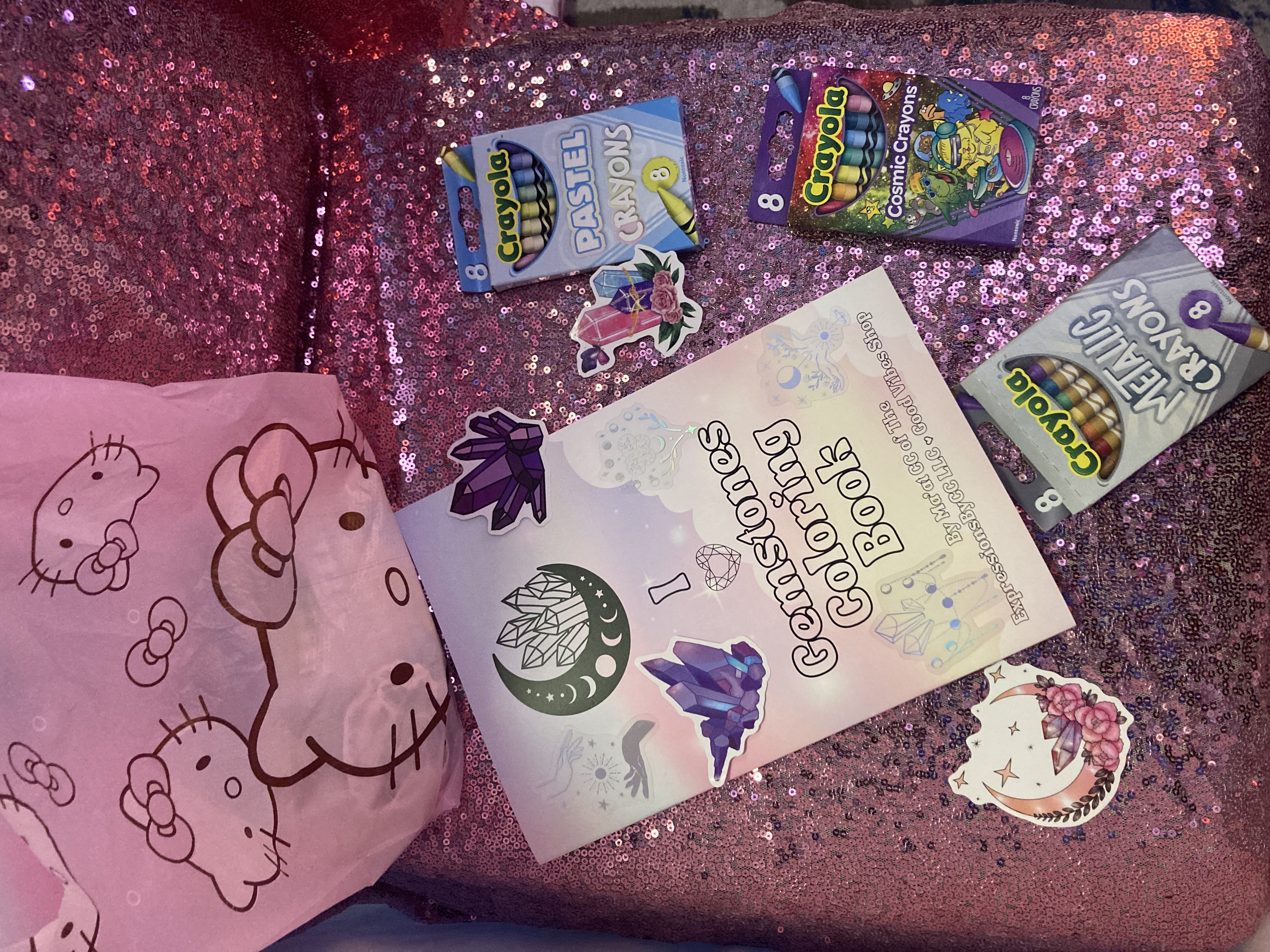-The I Love Gemstones Coloring Book Sets come with 3 Gemstone Coloring Books, 2 Different 8-pack Non-Toxic Crayola Crayons & 2 4-Pack Sets of Gemstone Stickers!